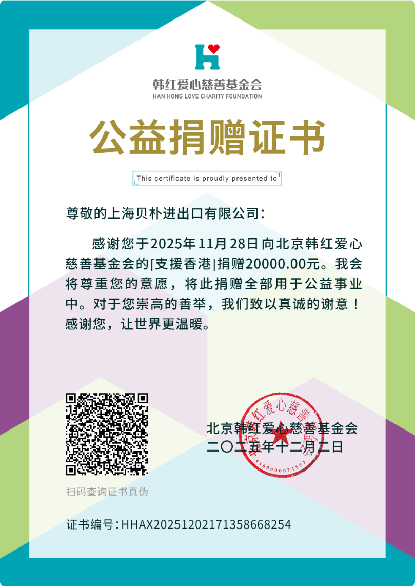 On Nov. 25th 2025, Hong Kong occured a deadliest fire in decades, reached the highest No. 5 alarm status. Shanghai Berpu donated 20,000RMB to philanthropic foundation, hope we can make modest to help people in disaster areas through.